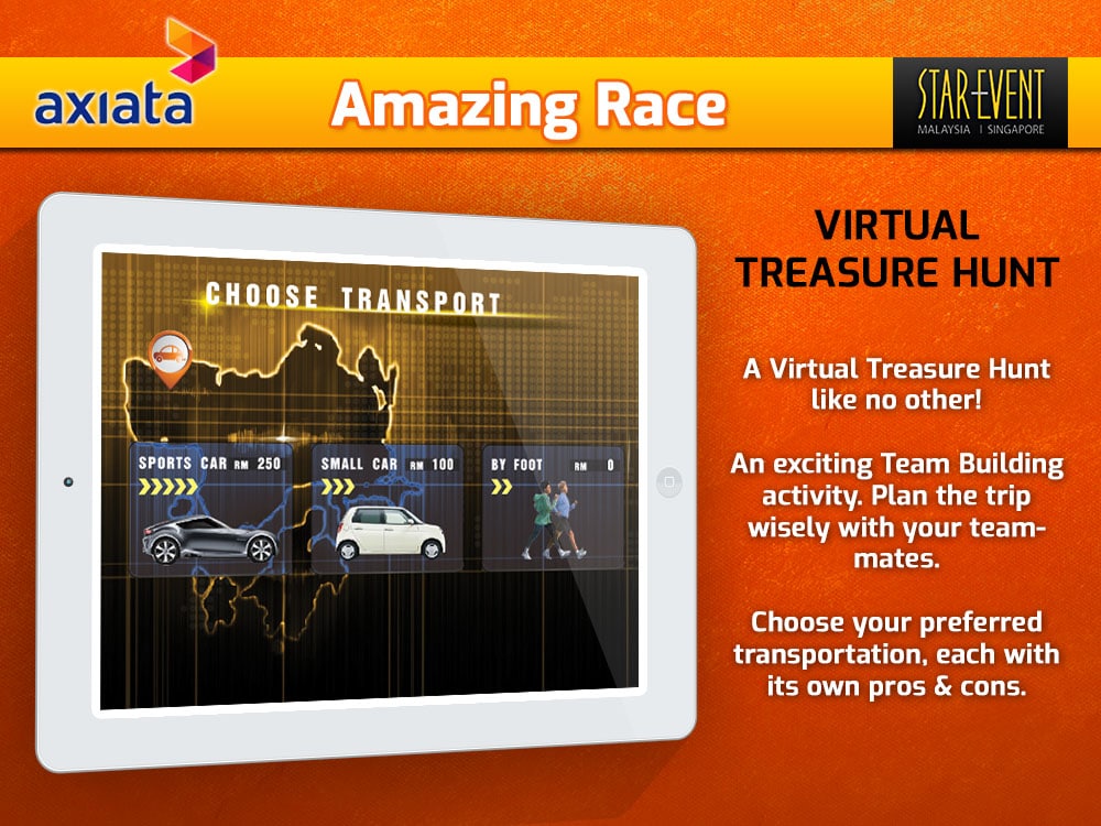 Amazing Race Facebook Game is a virtual treasure hunt that was organized by Star Event for the purpose of Axiata’s team building. It is one of a kind virtual treasure hunt as it combines both online and offline elements in solving the riddles & puzzles. Employees of Axiata will form a team and will be given certain in-game money that can be accumulated or spent for in-game items such as transportation, extra life, and so on. The game runs for a whole day and clues for each destination will be given by the game master at the FB page in real-time. Participants will be given riddles and the answers can only be found once they arrive at the correct destination. The first team to arrive at the final location will be crown as the winner.